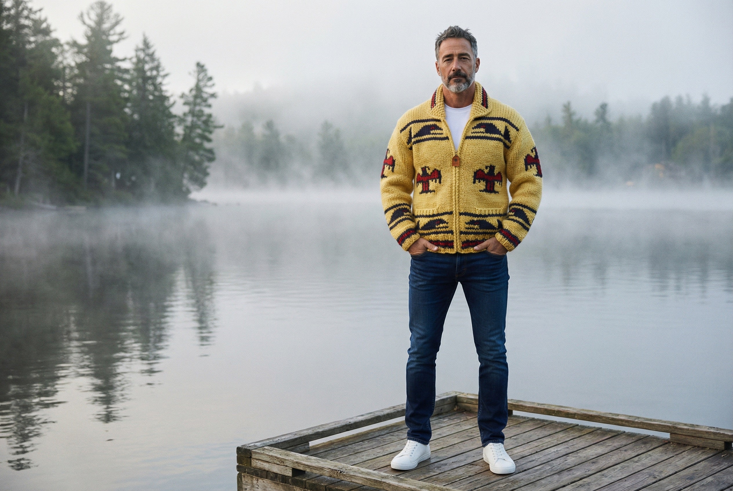 Since the Late 1800's the First Nations Peoples of Vancouver Island, B.C., Canada have been knitting their famed woolen sweaters. The unique designed of these garments evolved from their culture, myth, heritage and have an everlasting appeal. The ownership of these garments has became a prized possession. Since our beginning in 1977 we have worked with these age old designs and continued to develop new ones always with the historical significance in mind. Our philosophy is to keep our designs unique following our tradition and heritage and to make quality garments using natural fibers that will withstand the test of time.